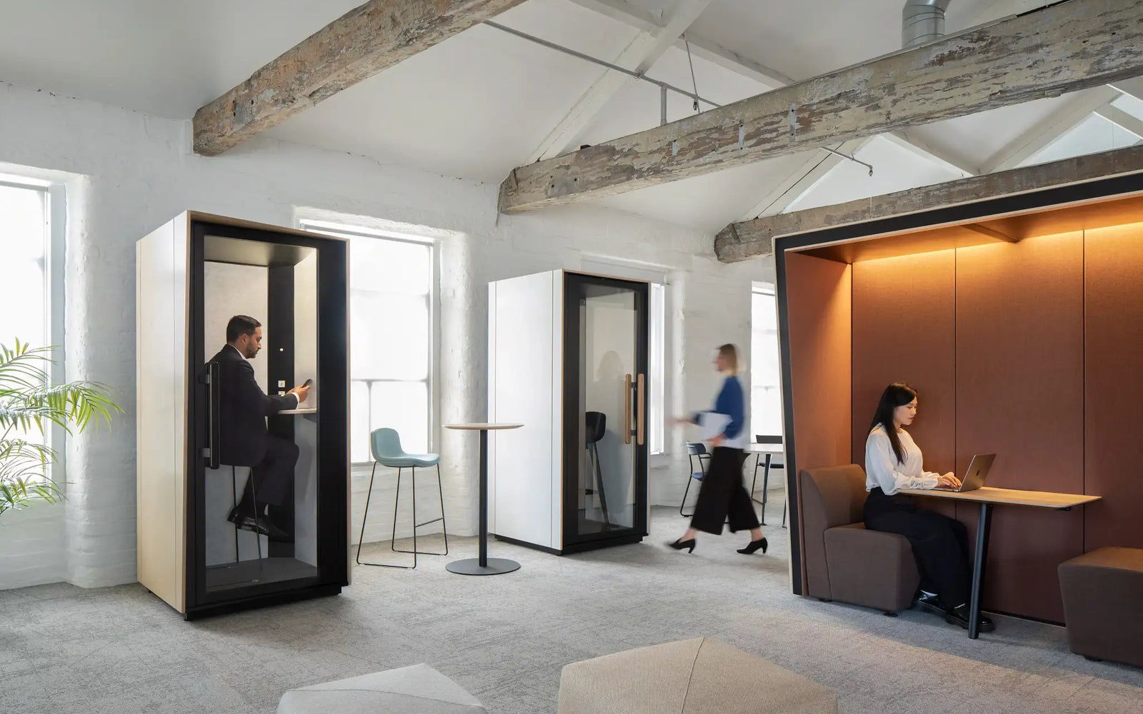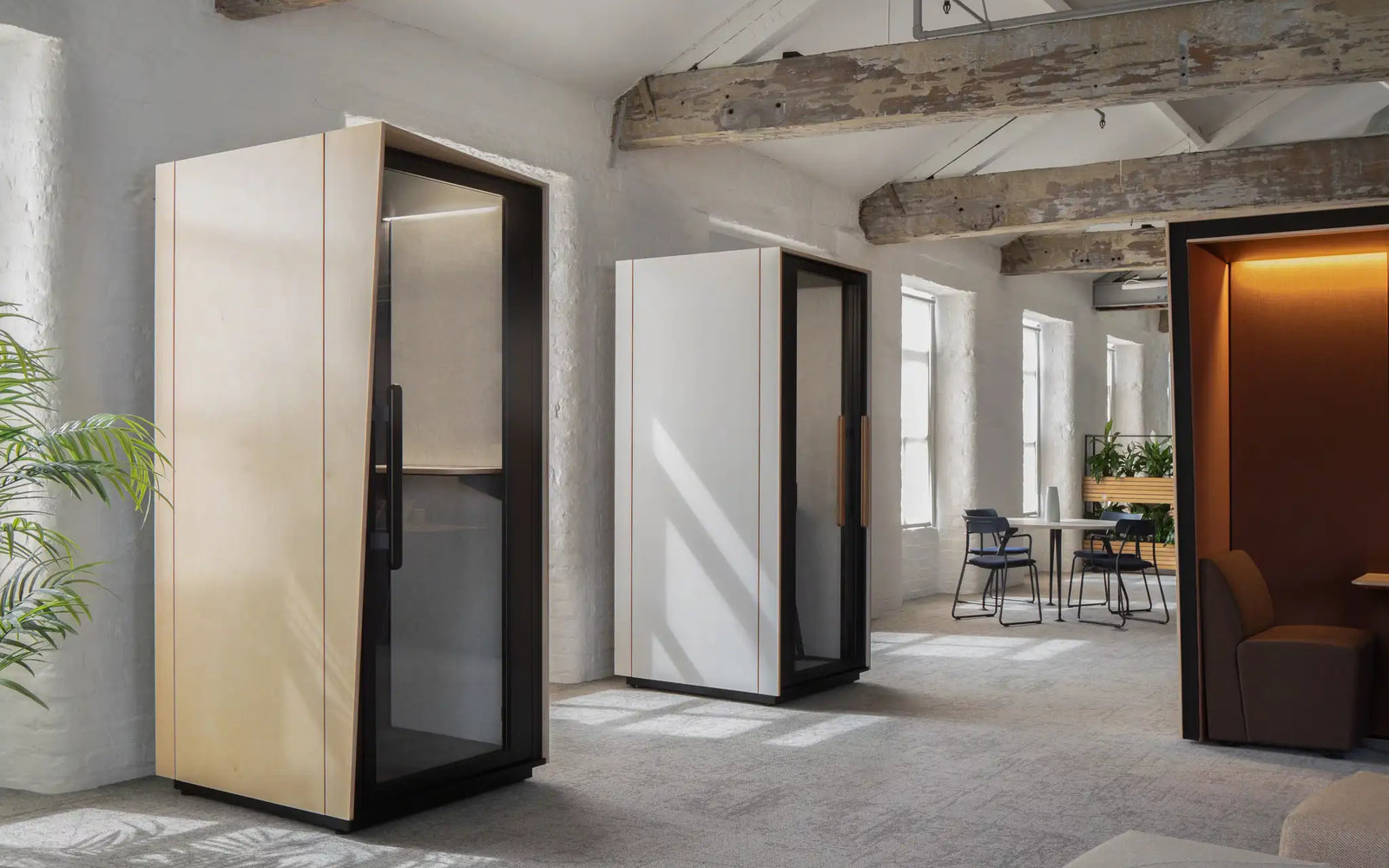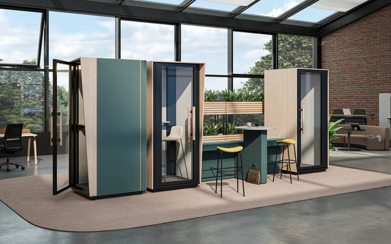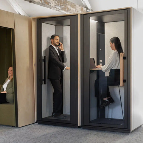 Die Boxen sind mit einem intelligenten Belüftungssystem ausgestattet, das Dich durchgehend mit ausreichend Frischluft versorgt. Mit ca. 40 Luftwechseln pro Stunde wird ein angenehmes Raumklima erreicht, welches Dir ein konzentriertes Arbeiten ermöglicht. Kühle Luft wird nach Innen gepumpt, und warme nach draußen. Die Ventilatoren sind zudem geräuscharm und stören so nicht bei Arbeit und Telefonaten.